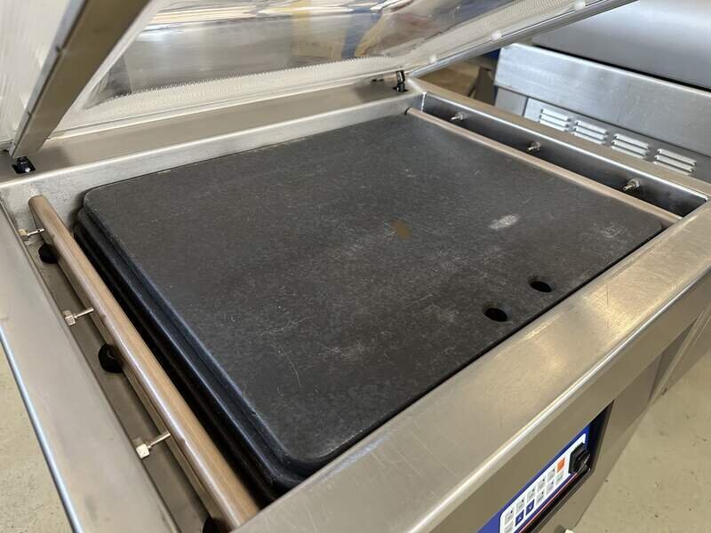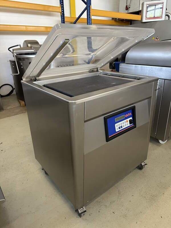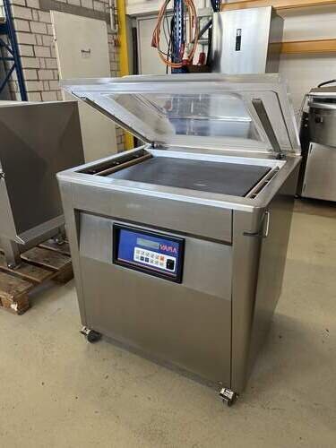 Wir verkaufen hier ein Vakuumierer vom Hersteller Vama, Typ VP 900 in einem sehr guten gebrauchten und funktionstüchtigen Zustand. Das Gerät ist Baujahr 2012, läuft auf 400 Volt, 5 kW, 120er Busch-Pumpe, mit Begasung, Schweißbalken rechts/links, Kammermaß 53/53/17 cm, rollbar, Werkstatt geprüft, sofort einsatzbereit, Maße B/T/H 85/75/95 cm, weiteres auf Anfrage.
