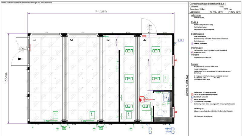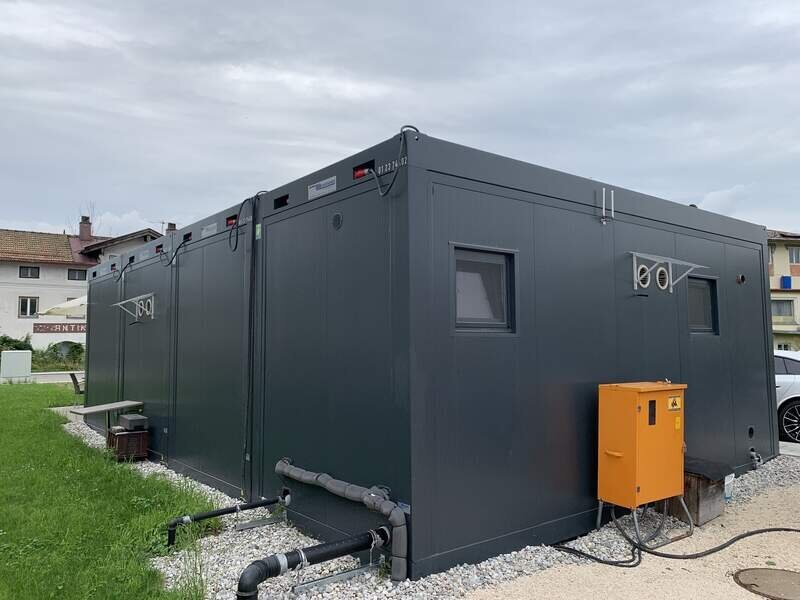 Die Containeranlage hat eine Heizung und Klimatisierung, ein Personal-WC, und einen Vorbereitungsraum.
