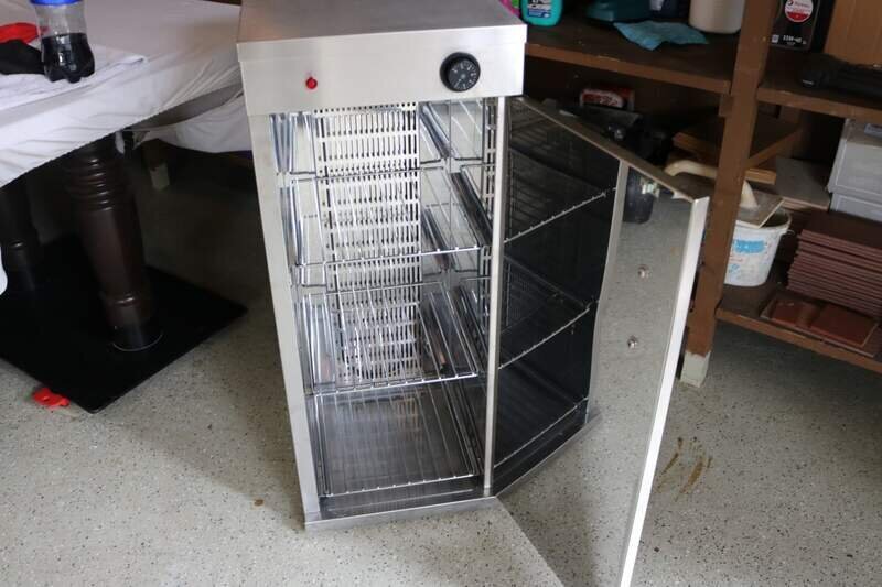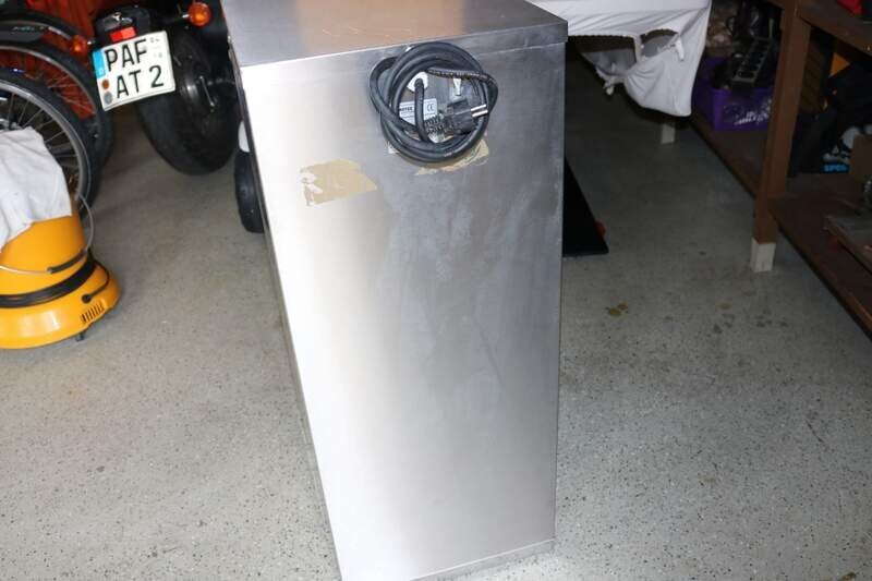 Wärmeschrank, Marke: Gastrotec, Modell T 60, KW 0,7, komplett aus Edelstahl, geschlossene Türe, Maße: H = 93 cm, B = 38 cm, T = 93 cm, TOP-Zustand