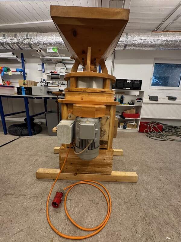 Die Mühle wurde 2014 direkt bei Waldner gekauft und über die Jahre intensiv genutzt. Sie hat stets zuverlässig gearbeitet, kann jedoch unseren inzwischen gestiegenen Produktionsbedarf nicht mehr abdecken.