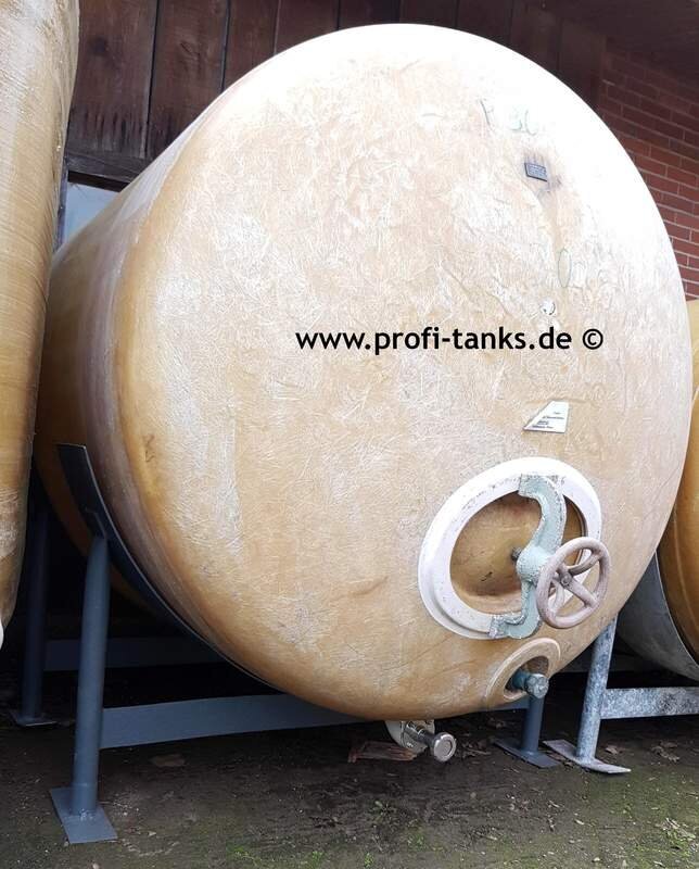 Polyestertank 3m³ / 3000 Liter GFK-Tank, oberirdisch, guter Zustand. L1,90 m, Ø 1,70 m, H 2,00 m; liegend, 2 Stahlsockel, Lagertank für Wasser, Flüssigfutter, Molke, Melasse, Gülle, AHL, ASL, Sickersaft, Rapsoel, Regenauffangtank usw. profi-tanks