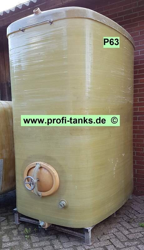 P63 ca. 4000L Polyestertank, GFK, oberirdisch, stehend, guter Zustand, Stahlgestell, div. Zu-/Ausläufe. Lagertank für Wasser, Flüssigfutter, Molke, Kartoffeldampfschalen, Melasse, Gülle, AHL, ASL, Sickersaft, Rapsöl, Regenauffangtank usw. profi-tanks