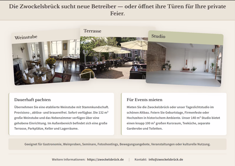 Die Zwockelsbrück sucht neue Betreiber — oder öffnet ihre Türen für Ihre private Feier.