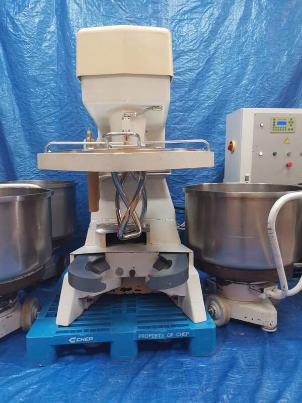 DIOSNA wendel mixer. Komplett +7 kessel edelstahl. Maschinen perfekt zustand. Minimum arbeiten. 120 KG teig. -180 liter kessel. Mischer edelstahl 2 gang.