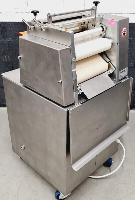 Die Hörchenwickelmaschine von Universum Modell: HWM 30 ist für schnelle und einfache Teige zum Wickeln sowie Stangen, Kornspitz und Laugenstangen u.s.w. und hat eine max. Bandbreite von 300 mm