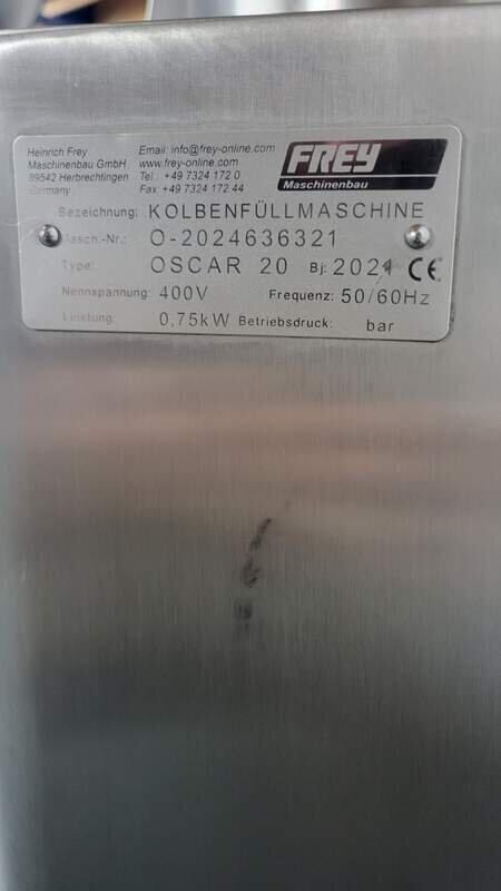 Angeboten wird ein Kolbenfüller Frey Oscar 20 Komplett V2a 400v.16A. mit Zubehör 14,20,30er Füllrohre siehe Foto, voll funktionsfähig sofort einsatzbereit. Sind mehrere vorhanden. Bj.2021