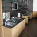 Brotregal ca 2 x 2,06 m, Kaffeeregal 1,45 m mit Unterschränken und Handwaschbecken